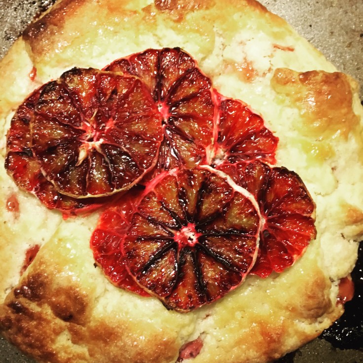 I officially hit 50,000 words sometime Thursday. In celebration, I gave myself three days off of work and writing. The idea was that I would get some to-do’s struck off the list but I just ended up going to parties and baking things. Which is also fun. Look at this gorgeous blood orange tart that I made! I only ate a bite of it because by the time it came out of the oven I was too full of goat cheese and potato galette and magical pasta and salad to really dive into this, but I can testify that it was delicious. The crust is transferable to any fruit and it’s not the worst crust I’ve ever worked with, at least, so I may be making more of these as the fruit comes in over the summer. Peaches would be especially lovely, with cinnamon…yeah, I’ll definitely be making more.