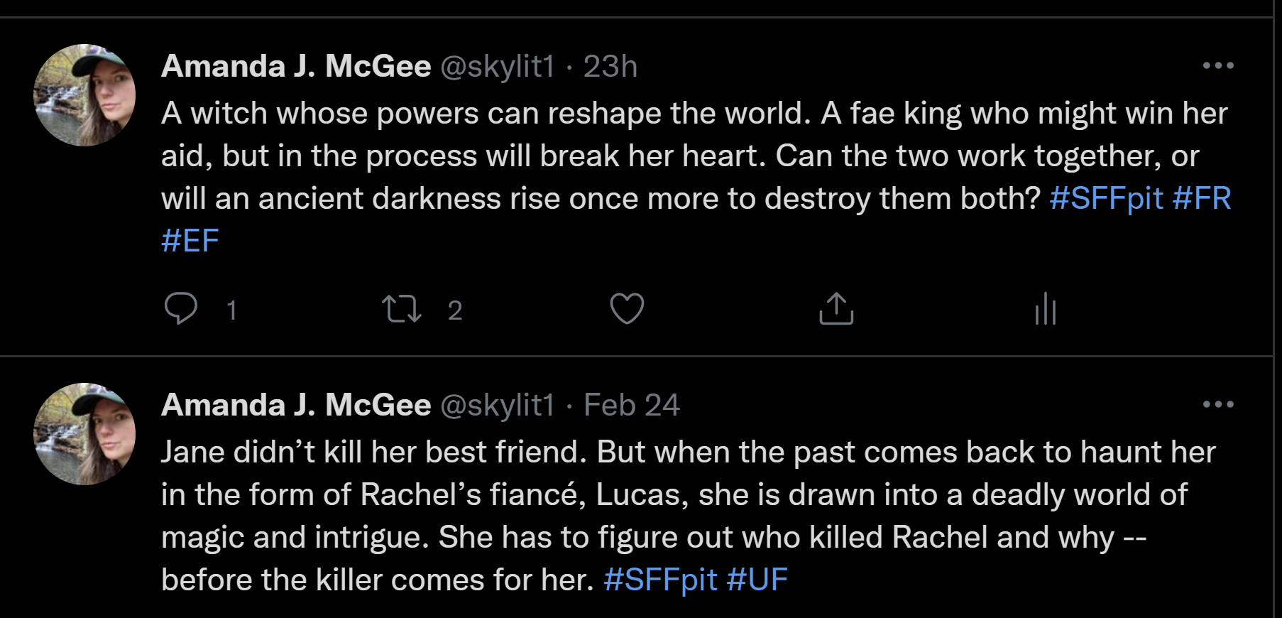 I haven’t been reading that much because I’ve been spending a lot of my spare time getting ready for Futurescapes, which is next week! So soon! So I’ve been reading through my critique group’s work and trying to get my ducks in a row there, and also spending a lot of time with the latter half of the novel I’ve submitted to the workshop. And if that wasn’t enough, I also participated in SFFpit yesterday, which took a lot of energy to prepare for. I’m happy to say I now have some pretty awesome pitches worked out for both my Futurescapes novel and the other novel I finished over the summer, screenshots below for the curious. I’m going to move into querying both of these in the next couple of months, which is intimidating. I’ve already been querying Codename: Zombie Book for a long time, of course, but I’ve only wracked up about 23 Rejections for that project, so I could potentially keep querying that as well. To be honest, I haven’t decided what to do with that project.