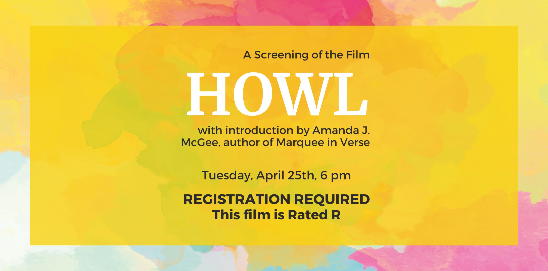 Join local author and poet Amanda J. McGee for the finale of the Marquee in Verse project. Following a brief introduction to poetic form, participants are invited to watch HOWL (2010) which discusses the groundbreaking longform poem HOWL through recitation and reenactment of the text, interviews, and court transcripts. This film is rated R. Get tickets here.